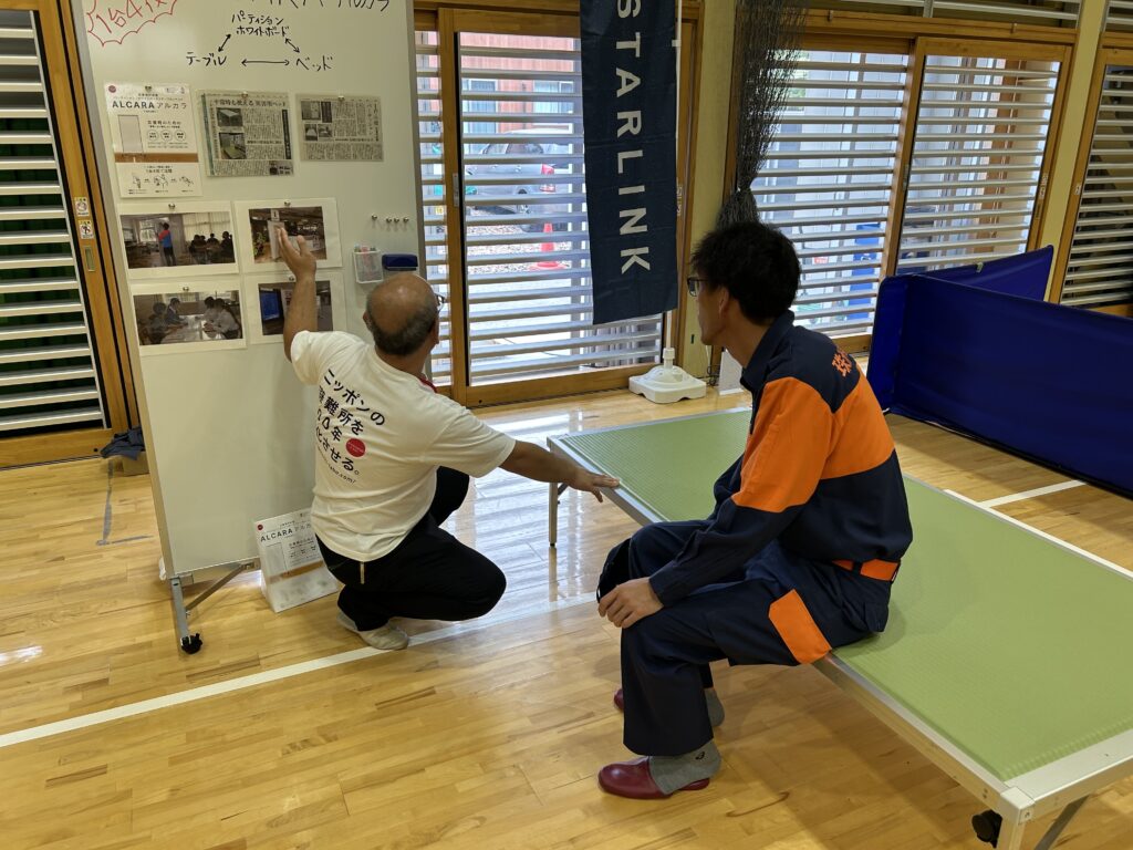 実は10月2日(木)に珠洲市役所を訪問して「ALCARAアルカラ」を紹介したところ、5日に行われる防災訓練に展示してもらって多くの関係者に見てもらってはどうか?とアドバイスを頂き、急遽調整頂いて防災訓練に参加させて頂き「ALCARAアルカラ」をご覧頂くことになりました!実機をご覧頂き直接ご説明も出来ましたので良い機会だったと思います!
